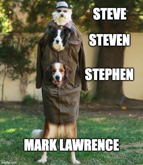 Presenting the thread that nobody asked for: every SPFBO entry from SPFBO1 through to SPFBO9 under a “Steve”, “Steven”, “Stephen”, “Stefan”, “Stevens”, “Stephanie”, etc in the byline.